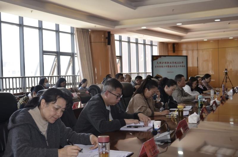 3月26日,大理护理职业学院召开2026年宣传思想工作暨意识形态工作专题会议。会议深入学习贯彻习近平新时代中国特色社会主义思想、党的二十大及二十届历次全会精神,全面落实上级关于宣传思想、意识形态、职业教育和卫生健康等工作的部署要求,总结回顾2025年工作成效,指出存在的问题和困难,明确努力的方向和措施,分析研判当前形势,安排部署2026年重点任务,进一步统一思想、压实责任、守牢底线,为学校高质量发展提供坚强思想保证和强大精神力量。