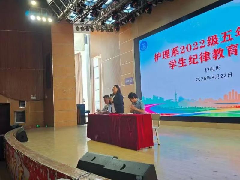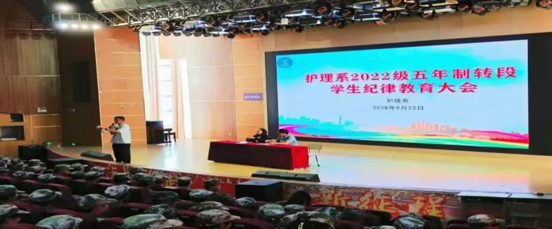 为扎实筑牢校园安全防线,进一步强化学生纪律意识,助力五年制转段学生平稳衔接大学生活,9月22日,护理系在学校第一报告厅召开2022级五年制转段学生安全纪律教育专题大会。会议由护理系学生管理科科长张敏华主持,护理系党支部袁秀林书记、护理系童玲彦主任出席会议。
