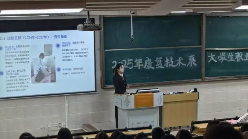 大赛分设成长赛道和就业赛道。成长赛道面向康复技术系全体在校学生,重点考察学生职业发展规划的科学性、合理性及持续性,关注其个人成长与职业目标的有效衔接。参赛学生结合专业特色与个人兴趣,将国家需要与社会需求融入职业规划,展现出清晰的自我认知和积极的探索精神;就业赛道则面向2024级学生,侧重考察求职实战能力,检验学生综合素质、岗位适应度与发展潜力,全面评估其就业准备情况。