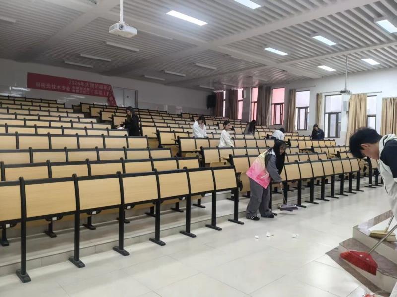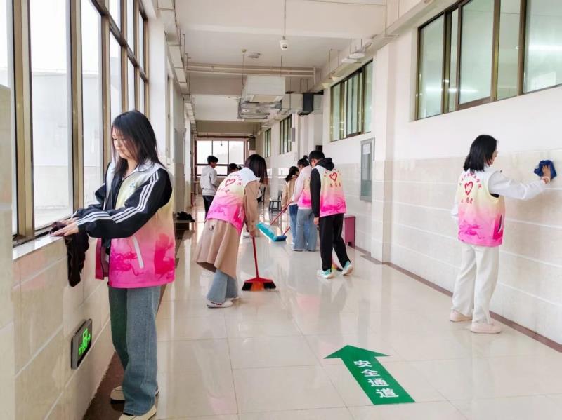 卫生死角清理组的师生们手持扫帚、垃圾袋、铲刀等工具,对教学楼后巷、宿舍区绿化带、食堂外围等重点区域的积存垃圾、烟头纸屑进行全面清理,集中整治墙面小广告、楼道乱堆杂物等问题,让卫生死角“焕新颜”;公共区域维护组分工明确、配合默契,仔细擦拭教学楼门窗、楼梯扶手等公共设施,规范整理图书馆书架,清扫校园道路沿线落叶与杂物,让校园公共空间更整洁;文明倡导组的志愿者们主动向校内师生发放“爱护环境”倡议书,耐心宣讲文明卫生理念,呼吁大家共同守护校园环境,营造出“人人参与环境整治、人人争当文明使者”的浓厚氛围。