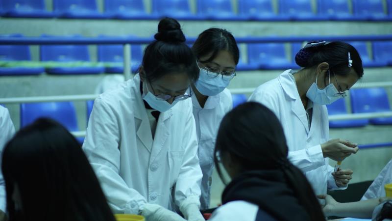 党建引领下的医教协同,既是服务社会的生动实践,也是立德树人的鲜活课堂。门诊部党支部将此次体检工作作为“我为群众办实事”实践活动的重要内容,党员医护骨干在完成体检任务的同时,现场开展健康知识科普,针对女生生理健康特点答疑解惑,将健康防护知识送到学生身边。护理系师生则将体检现场转化为“行走的思政课堂”,让学生在服务中厚植医者情怀、涵养职业精神。