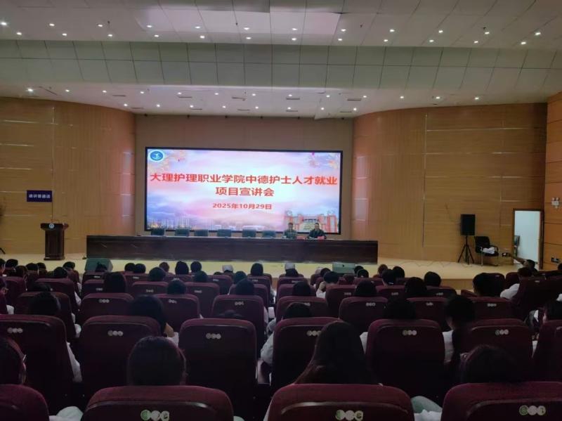 近日,大理护理职业学院开展中德护士人才就业项目宣讲会。学校邀请云南贤境育人教育投资咨询(集团)有限公司总经理黄浩刚率队到学校宣讲,共同探寻国际护理事业发展新机遇,通过项目合作整合中德优质教育资源,培养符合国际标准的高素质护理人才,为推动学校国际化人才培养注入新动能。科研(对外交流)部马向尧主任主持宣讲会。