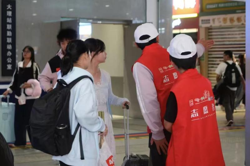 中秋逢国庆,家国共团圆。10月1日至8日期间,在共青团大理州委、大理州文化和旅游局的统筹下,大理护理职业学院精心组织师生志愿者服务队,每日坚守在大理高铁站,开展“青春献礼,服务文旅”专项志愿服务活动,用热情的微笑和专业的服务,成了高铁站一道亮丽的风景线。
