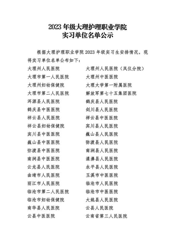 上一篇:2022年级大理护理职业学院 实习单位名单公示
