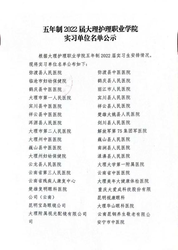 上一篇:2023年级大理护理职业学院 实习单位名单公示