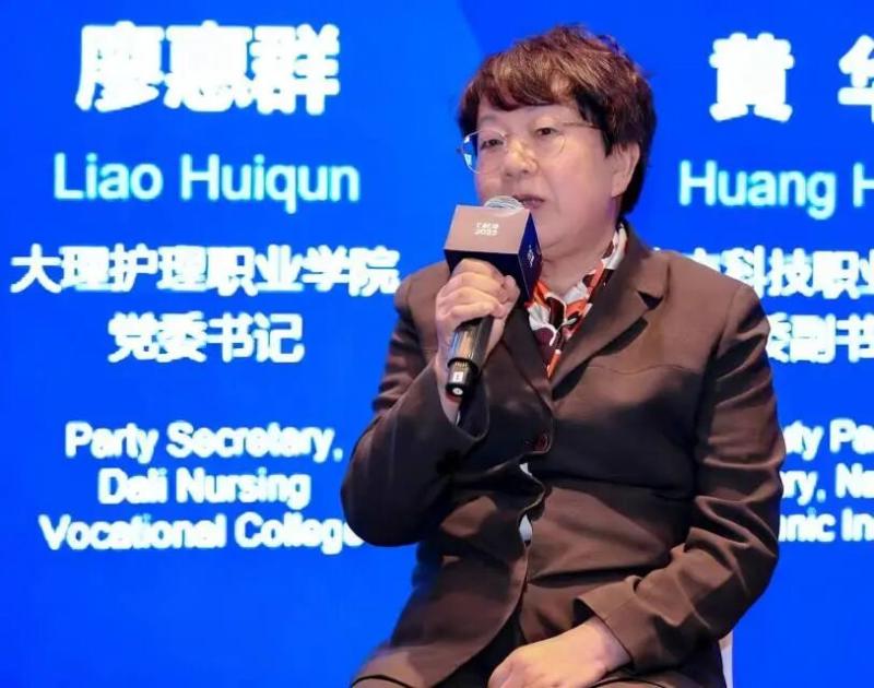 在“匠谷圆桌对话”环节,廖惠群书记作为发言嘉宾,与来自联合国教科文组织、国内外知名院校及跨国企业的代表们展开了深入交流。她围绕“国际化办学与产教融合”核心议题,结合大理护理职业学院办学特色与实践经验,分享了学校在深化产教融合、推进“职教出海”和培养国际化护理人才等方面的探索与思考。她强调,职业教育的高质量发展必须紧密对接产业需求,通过“引进来”与“走出去”相结合的双轨策略,既要借鉴国际先进理念,也要积极输出中国标准与模式,服务“一带一路”共建国家的产业经济发展。