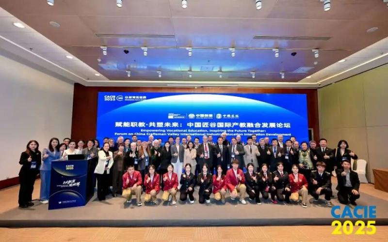作为本届年会的重要平行论坛之一,“赋能职教·共塑未来”论坛旨在搭建一个开放共享、协同创新的全球产教合作平台。廖惠群书记受邀担任“中国匠谷国际产教联盟”成立启动仪式的嘉宾,共同见证了这一重要时刻。该联盟的成立,将汇聚全球优质产业资源与职业教育培训力量,探索教育、科技、人才“三位一体”的协同发展新路径,为推动世界职业教育的公平、包容与可持续发展贡献力量。