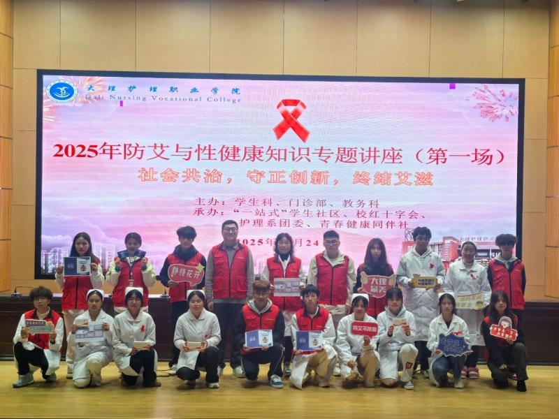 11月14日起,大理护理职业学院组织开展了一系列形式多样、内容丰富的艾滋病防治及性健康宣传教育活动。深入贯彻落实《云南省高等学校艾滋病防治及性健康宣传教育三年行动方案(2025-2027年)》精神,积极响应2025年“世界艾滋病日”“社会共治,守正创新,终结艾滋”的号召,着力提升全体学生的防艾意识与性健康素养,筑牢校园健康防线。此次活动由学生科、教务科、门诊部联合举办,“一站式”学生社区、护理系团委、校红十字会、青春健康同伴社承办。