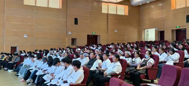 11月5日下午,学校教务科、后勤科和护理系联合组织护理系师生和学校食堂工作人员,在第二报告厅开展食堂营养与健康知识专题培训讲座。进一步贯彻落实《健康中国“2030”规划纲要》、《国家营养健康食堂建设指南》等文件要求,提升食堂工作人员营养健康知识水平和服务能力,保障师生饮食安全与健康。教务科科长茶国萍主持培训活动。