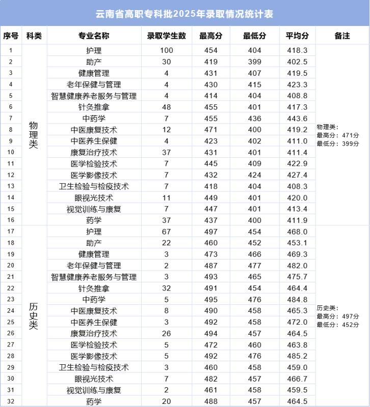 云南省高职专科批录取情况