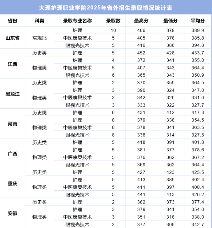 截止8月7日,大理护理职业学院共完成8个省份原始志愿的录取工作。