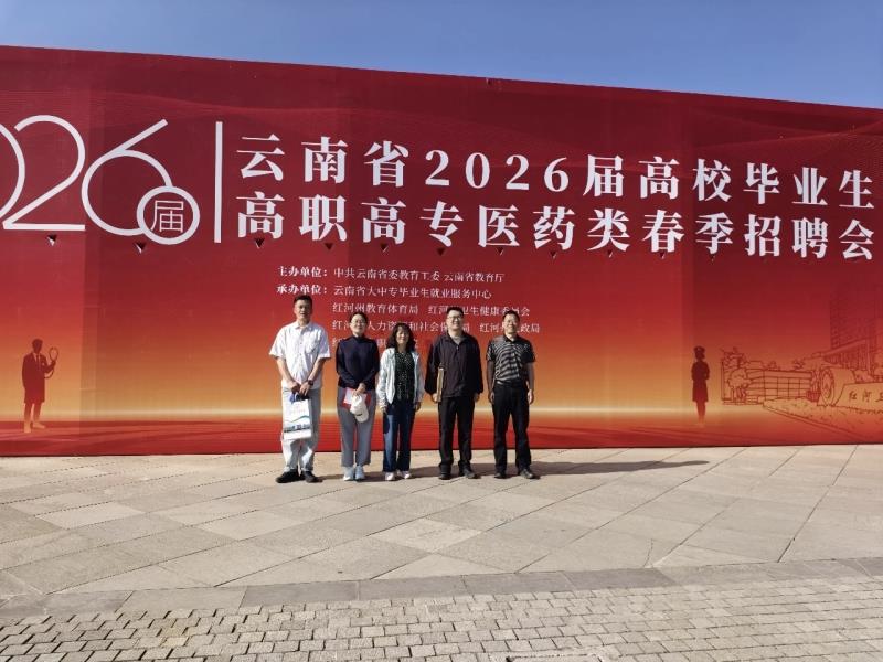 3月下旬,在学校党委和行政的统一领导下,由学生科牵头,组织各系部就业工作负责人组建专项工作组,全面贯彻教育部及云南省教育厅关于2026届高校毕业生“春季促就业攻坚行动”的部署要求,把握春季招聘关键时机,扎实推进毕业生就业工作,依次前往大理、曲靖、红河等3地,参与医药类专场招聘会,并同步开展访企拓岗专项活动,积极拓展就业合作渠道。